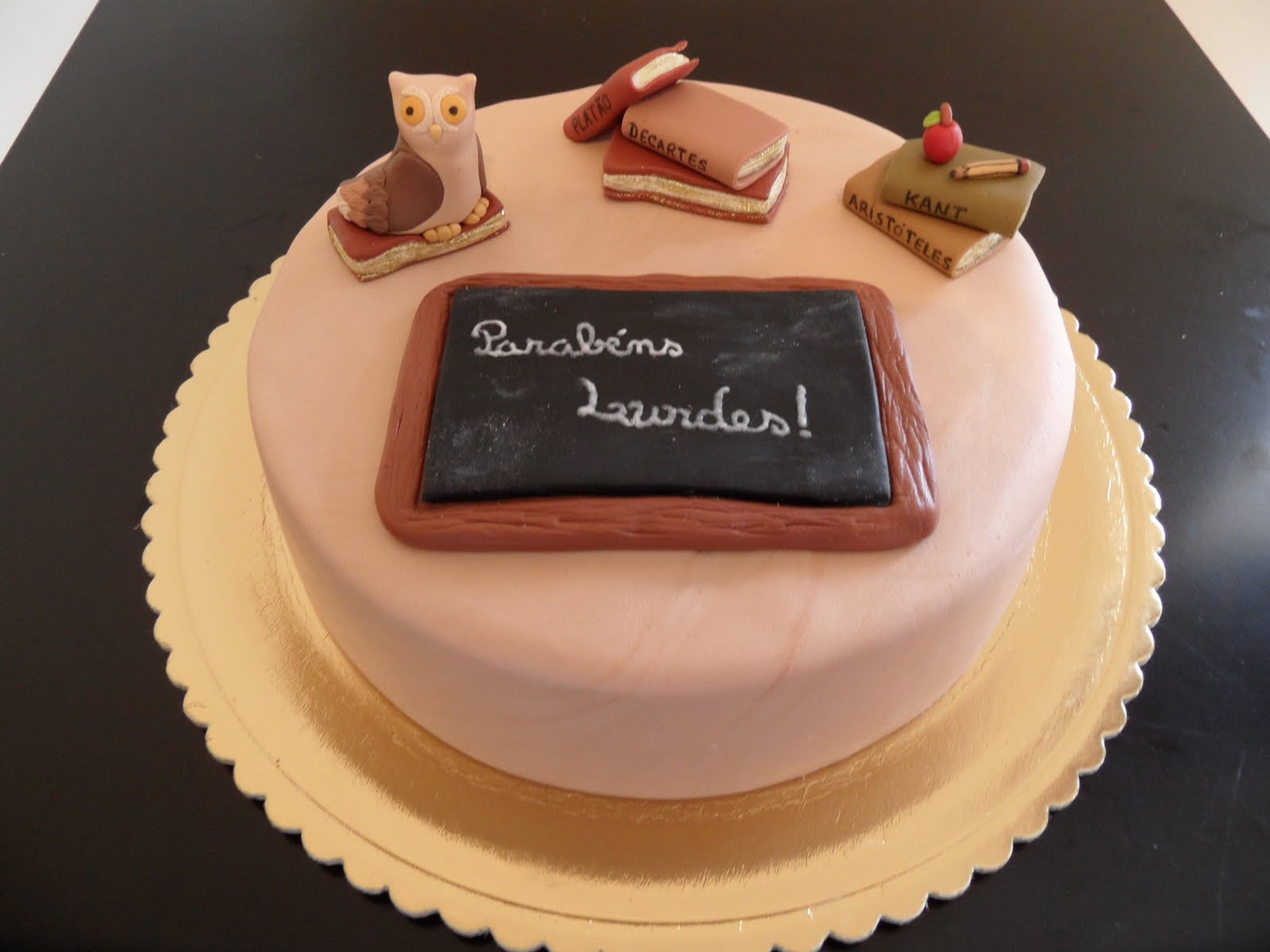Este bolo foi feito para uma professora de Filosofia!